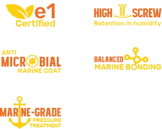 | PRESERVATIVE TREATMENT | Four-stage preservative treatment (Veneer, Resin, Adhesive & Surface Treatment) |