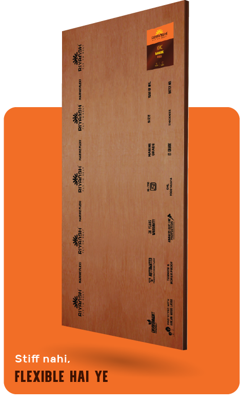 Riyansh Marine Flexi is crafted for interiors that curve, twist, and flow with imagination. Designed using premium treated veneers, it bends effortlessly without cracking perfect for arches, round furniture, and curved panels. Its E1 certification ensures low formaldehyde emissions, making your creative spaces not just beautiful, but also healthier to live in.